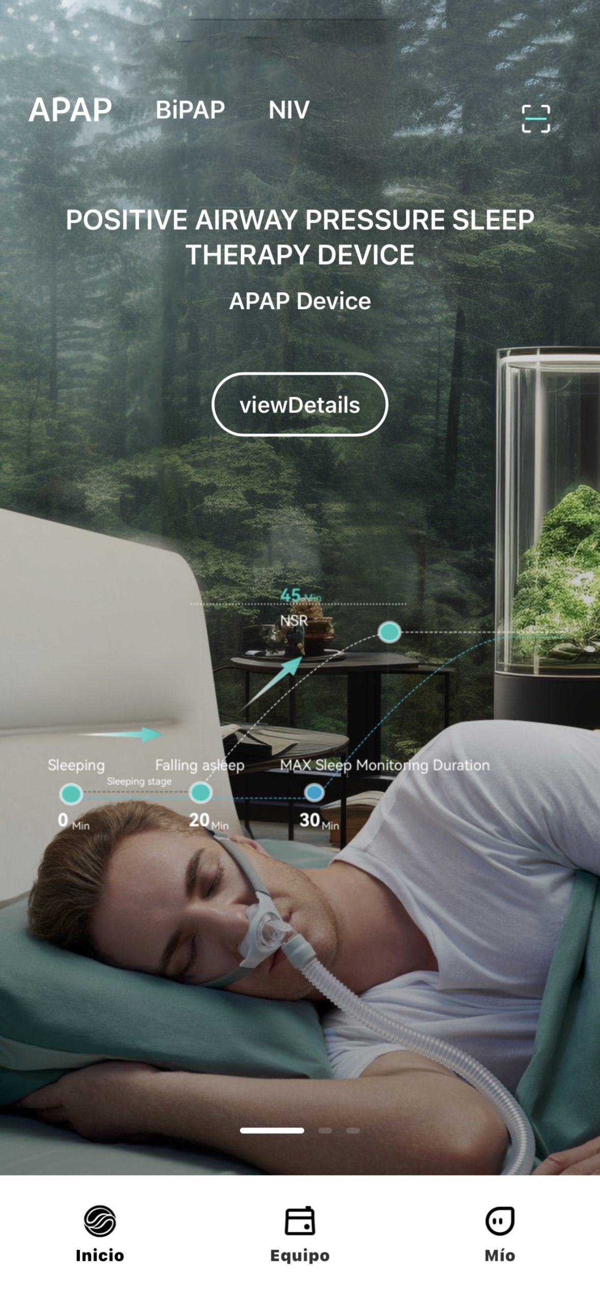 El CPAP SMB SUNNY GRAND con conectividad Bluetooth para dispositivos móviles, tarjeta SSD para descarga en programa de computadora y conectividad WiFi para poder ser programado a DISTANCIA/CONTROL REMOTO, es un dispositivo de presión continua positiva en las vías respiratorias que proporciona aire a una presión predeterminada AUTOAJUSTABLE a través de una mascarilla, y constituye el tratamiento de primera línea del Síndrome de Apnea-Hipopnea Obstructiva del Sueño (SAHOS). Se utiliza para mantener constante la presión en la vía aérea durante todo el ciclo respiratorio. Actúa de manera fisiológica, ajustándose de forma hermética sobre la nariz del paciente, como una férula neumática, evitando el colapso de la vía aérea superior durante la inspiración y la espiración.