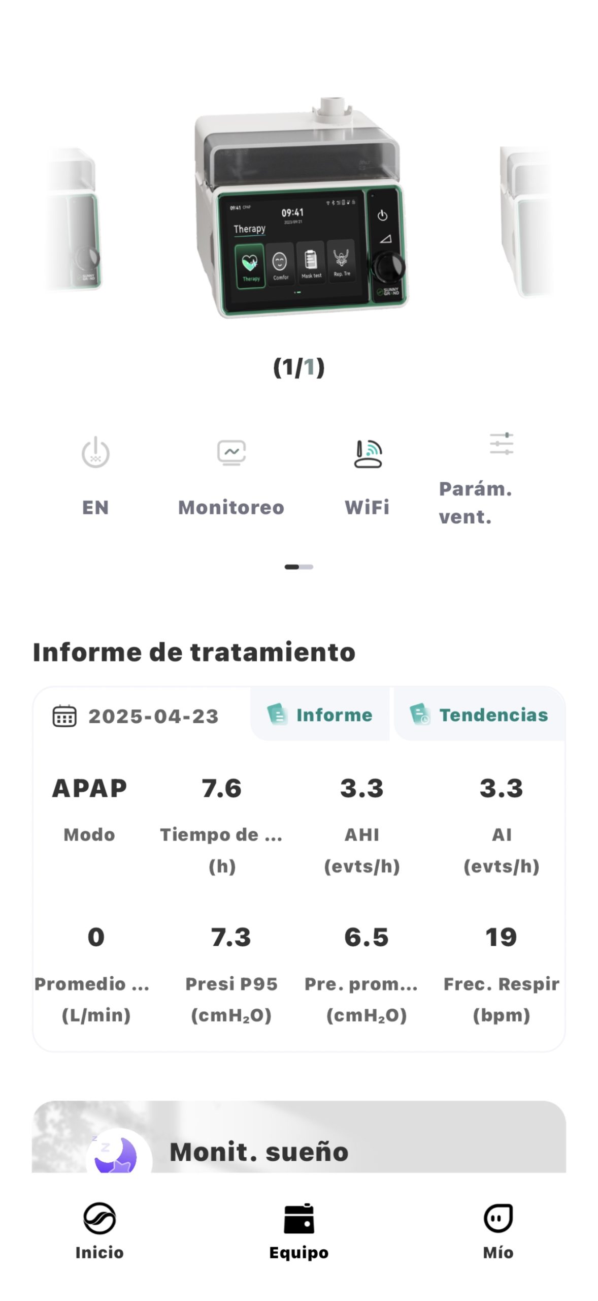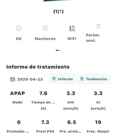 Tecnología de detección de respiración precisa Adapt Treat™ para la identificación integral de eventos respiratorios del sueño: CSA (Apnea obstructiva del sueño), OSA (Apnea central del sueño), CSR (Respiración de Cheyne-Stokes), HYP (Hipopnea), SNORE (Ronquido), FLM (Limitación del flujo).