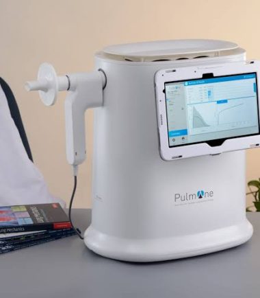 MiniBox+™ es un dispositivo portátil patentado, el primero en su clase, para la Prueba de Función Pulmonar.